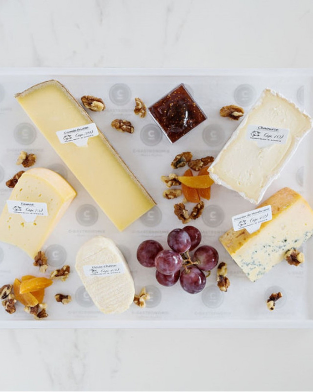 Découvrez une délicieuse sélection de fromages entiers soigneusement choisie par notre fournisseur, parfaite pour satisfaire les amateurs de fromages. La variété du plateau dépend du choix de notre fromager expert.