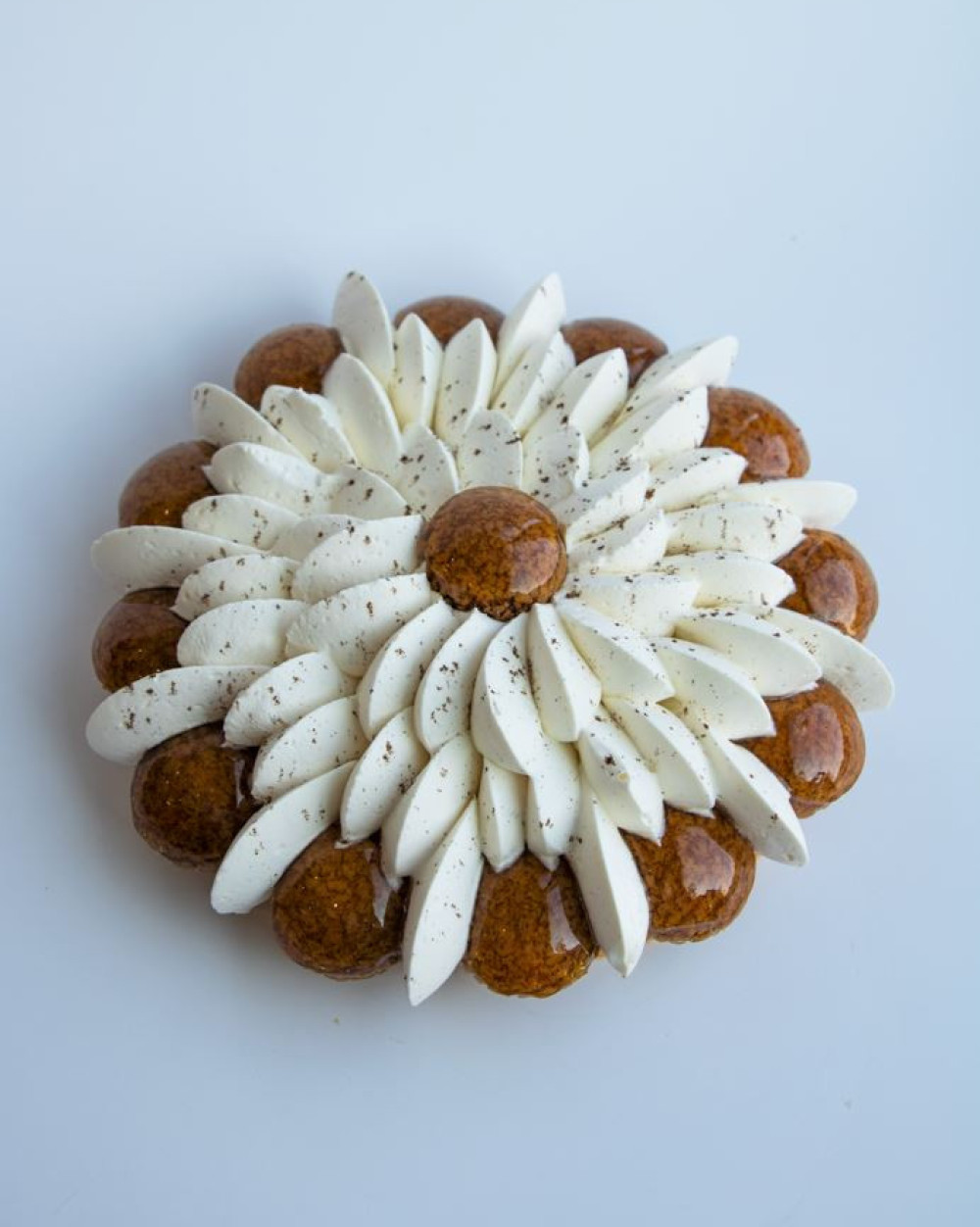 Pâte feuilletée, crème pâtissière vanille, choux caramel, crème légère vanille