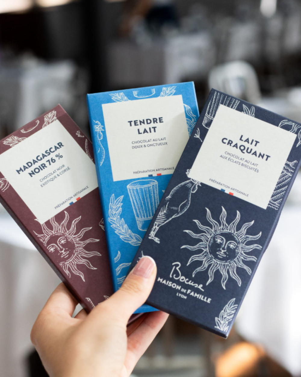 Madagascar Noir 76% : Fève de cacao, Sucre, Beurre de cacao, émulsifiant : Lécithine de tournesol, Extrait naturel de vanille