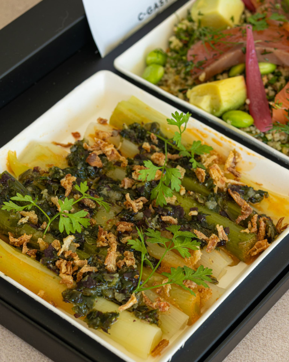 Poireau vapeur, tartare d’algues, vinaigrette au miso et gochugaru - Fruits à coque, gluten, soja, sulfite, poisson