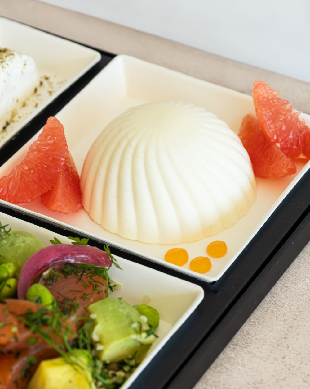 Blanc-manger au lait ribot, fruits frais de saison - Lactose, poisson