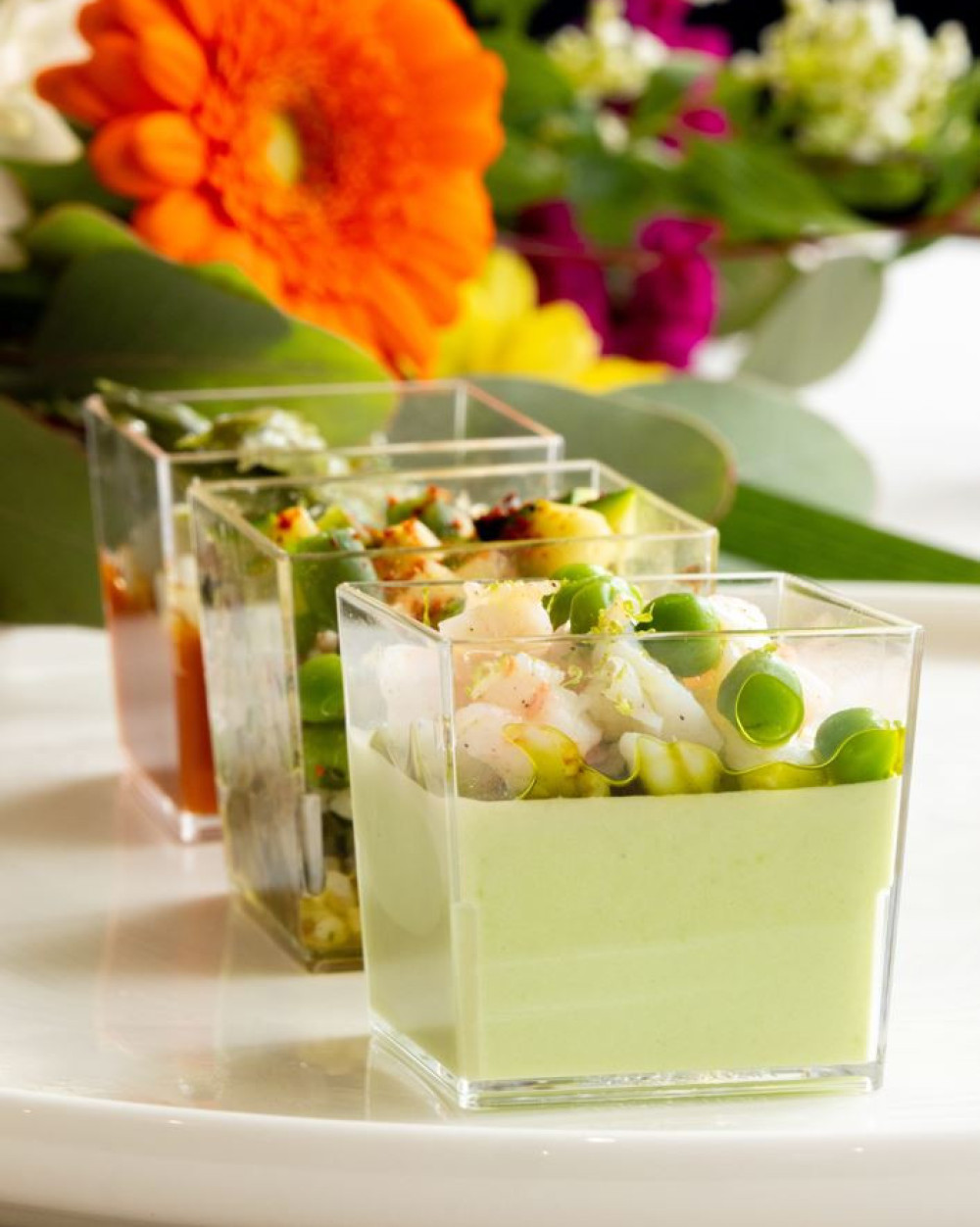 Sous la forme d’une petite verrine gourmande et élégante, nous vous proposons ces trois recettes travaillées avec soin par nos chefs. Elles apportent une touche fraîche et réconfortante à vos cocktails.