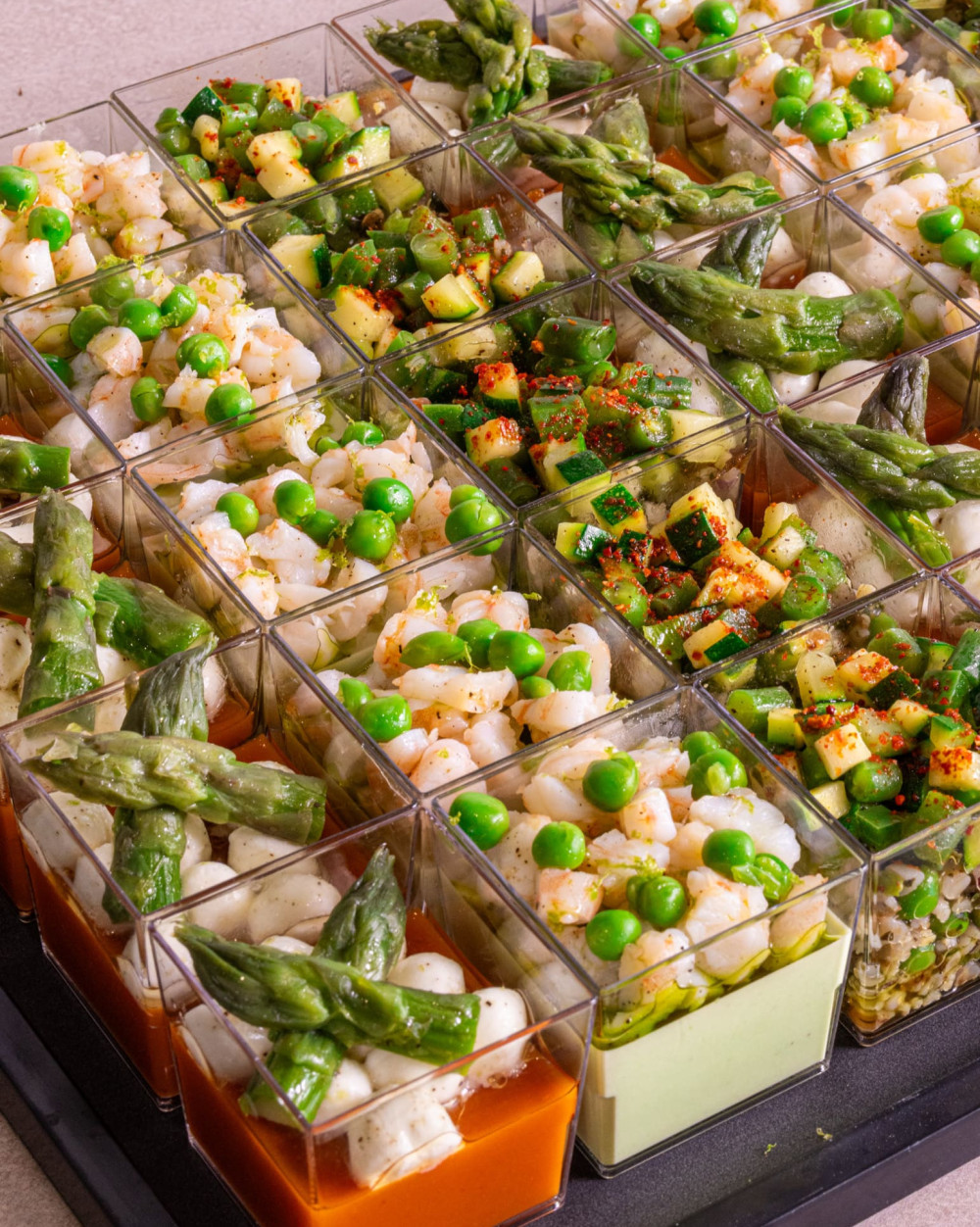 Un assortiment de verrines fraîches et élégantes pour apporter une touche gourmande à vos cocktails. Trois recettes travaillées avec soin, mêlant textures et saveurs de saison.