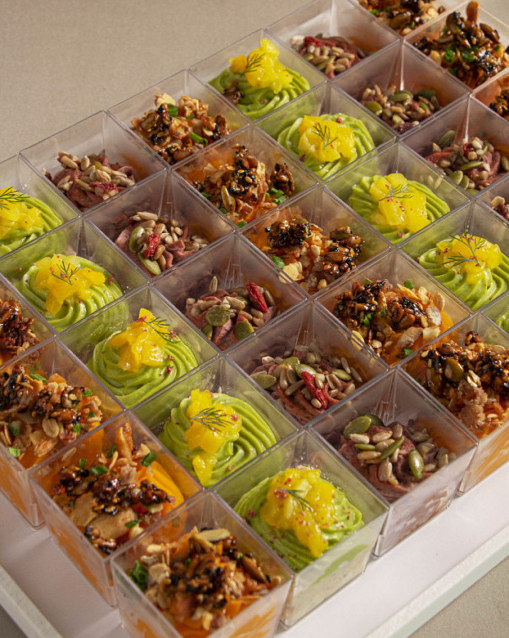 Sous la forme d’une petite verrine gourmande et élégante, nous vous proposons ces trois recettes travaillées avec soin par nos chefs. Elles apportent une touche fraîche et réconfortante à vos cocktails.