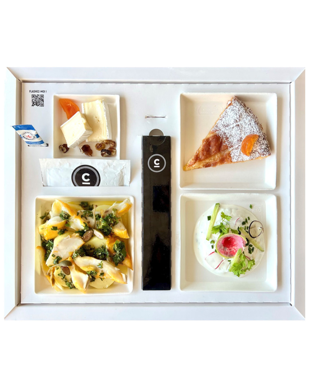 Chacun de nos plateaux est accompagné de couverts en inox, d'un rince-doigt et de sel de Guérande.